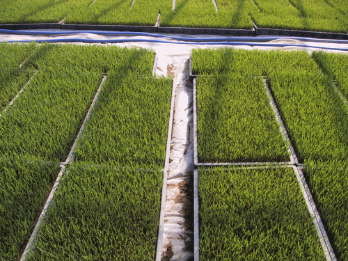 「左側奥のほうに幾分緑色に見えるのがササニシキです」