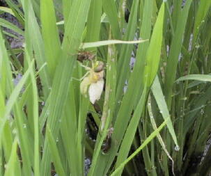 が行われています。 いもち病は、病気にかかる場所によって「葉いもち」、「穂いもち」などと呼ばれていて 葉に多く発生した場合には、草丈が伸びなくなりひどくなると稲が枯死してしまうことも あります。また穂が出たときに穂首がいもち菌に侵されると穂に養分がいかなくなり 不作の直接的な原因となる場合があります。