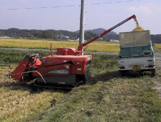 それでもコンバインのスピードを落としながらなんとか刈り取って行きます。