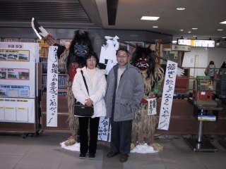 秋田駅では「なまはげ」の人形が出迎えてくれました。
