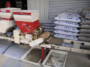 土入れの工程は播種機の土入れ機能を使って、空の箱に育苗シートを敷き、育苗用に