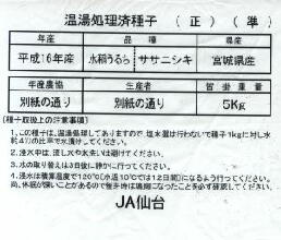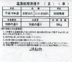今年使用する種籾は、JA仙台(仙台農協)の指導により、お米の銘柄としての特性を守る