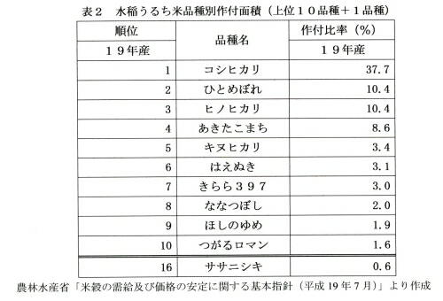 現在では16位のササニシキであるが、1993年の大冷害までは長い間コシヒカリに次ぐ2位の作付面積を誇ってい