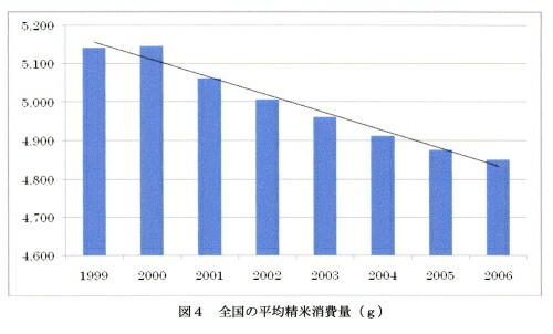 て触れる。そしていまなお進む米離れの現状を、今現在公表されている数字を基に、簡単な回帰分析を用いた将来 の予測を踏まえて、生産者の視点と消費者の視点の2視点から捉えることにする。
