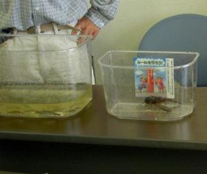 20分くらいの短い時間でしたがエサを入れたのが良かったのか、ザリガニやメダカ、