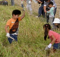 泥んこになりながらいっしょうけんめいに植えてくれました。