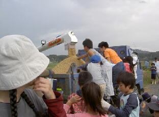 昨年の稲刈りは、雨にたたられて中止になってしまいましたが、今年は、参加してくれた
