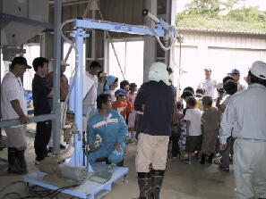 この機械の操作はいたって簡単で、子供たちでも大丈夫。代わる代わる、持ち上げたり、
