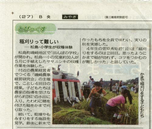 稲刈り体験の様子は、平成17年10月14日付の河北新報に掲載されました。