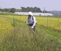稲刈りをあと少しにひかえ、ことし最後の草刈りです。