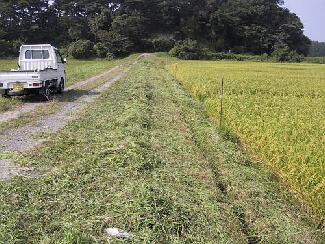 草刈りは、いつもは田んぼのアゼや周りの草地(荒地)、道路なども刈るのですが、